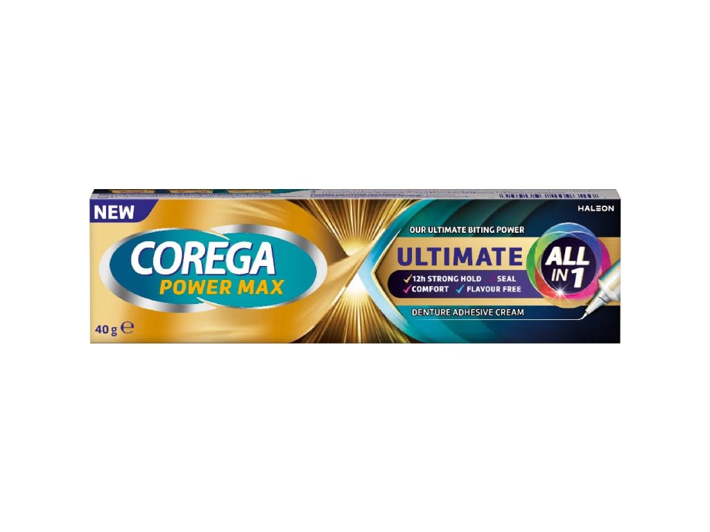 Fixační krém bez příchuti Corega Cream Max Ultimate All In One obsahuje nejlepší technologii pro pevný skus. Krém chrání před pronikáním jídla pod náhradu a díky přesné špičce se precizně nanáší.